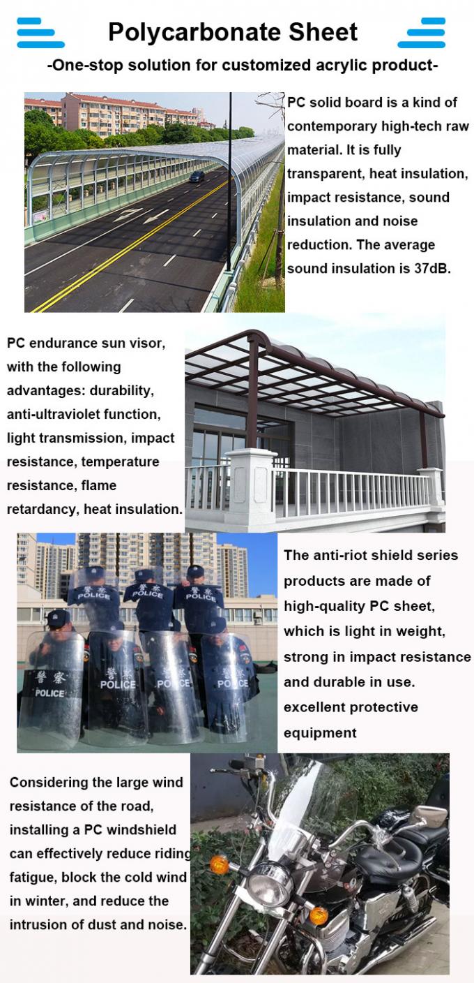 แผ่นแข็ง PC และแผ่นแสงแดดได้รับการยอมรับอย่างเป็นเอกฉันท์จากอุตสาหกรรมการตกแต่งอาคารสำหรับคุณสมบัติทางกายภาพ ทางกล ทางไฟฟ้า และทางความร้อนที่ยอดเยี่ยมสินค้าส่งออกไปทั่วประเทศ เพิ่มทัศนียภาพที่สวยงามให้กับพื้นที่อยู่อาศัยของผู้คน